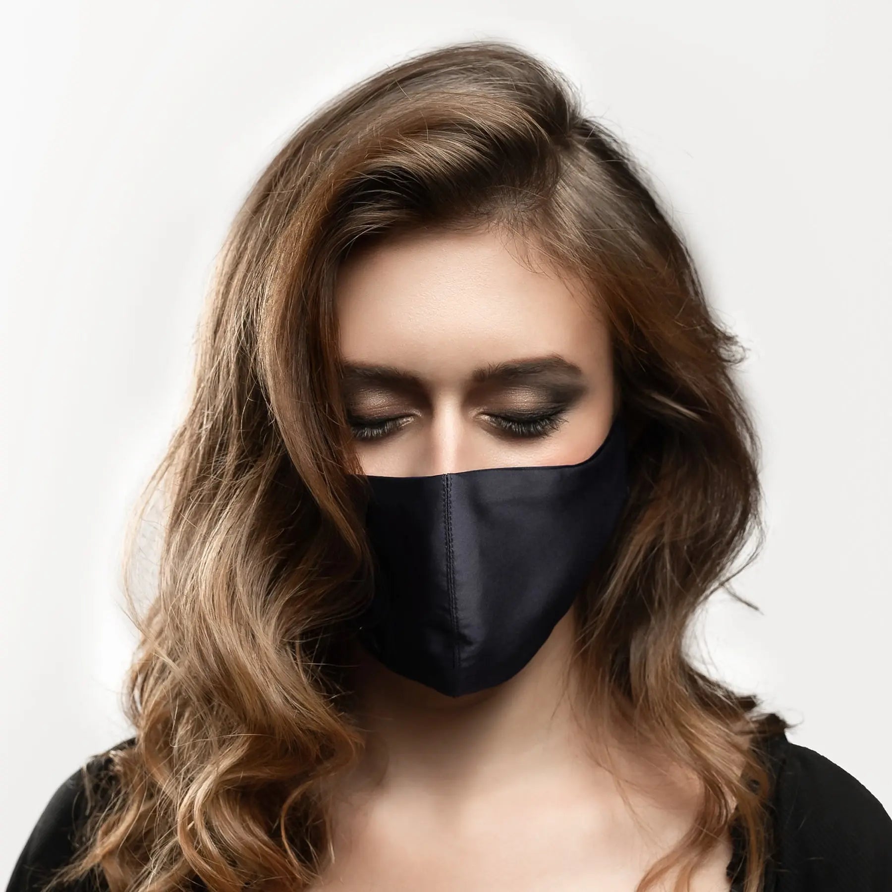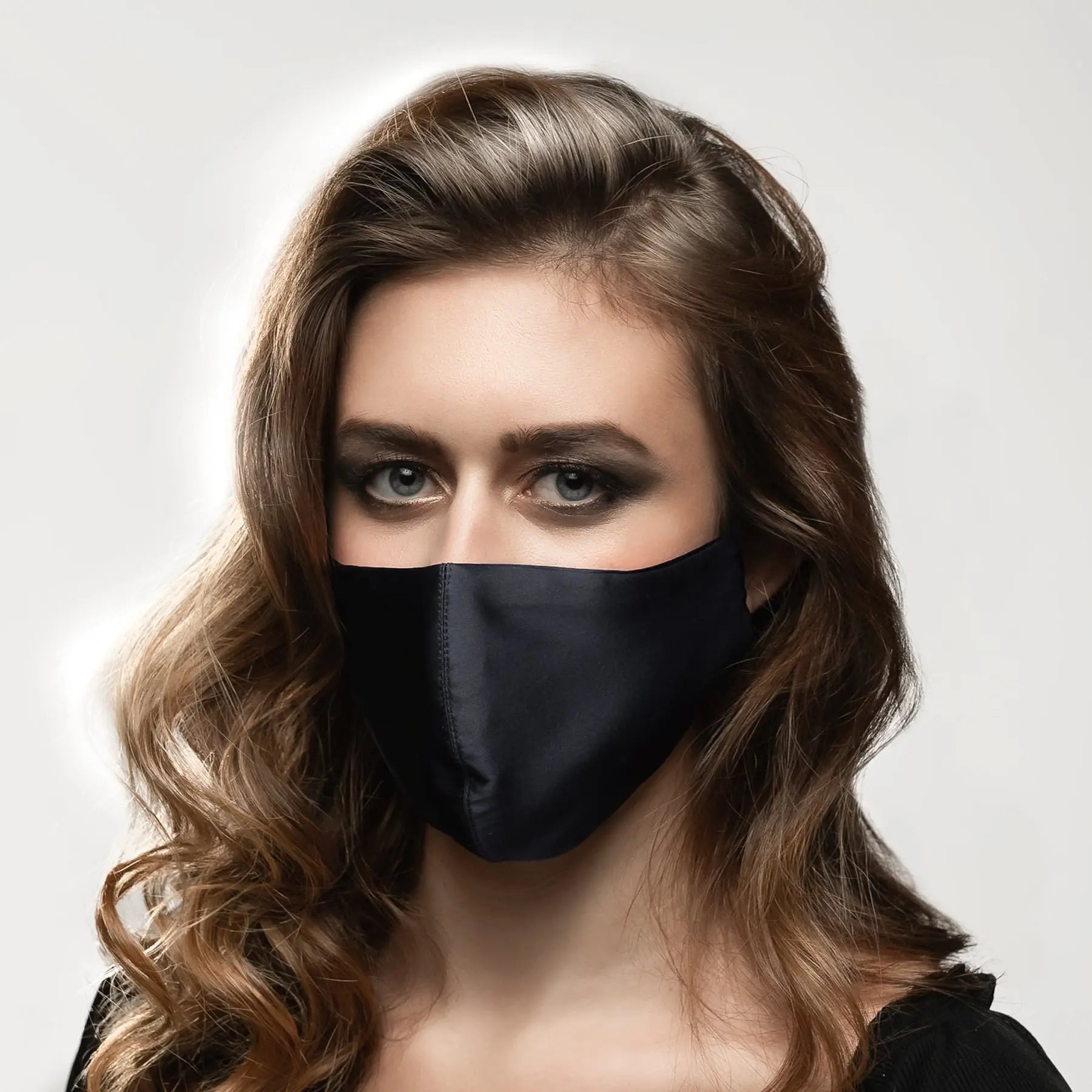 Pure Mulberry SILK Face Mask With Nose Wire - Black - SilkSleek