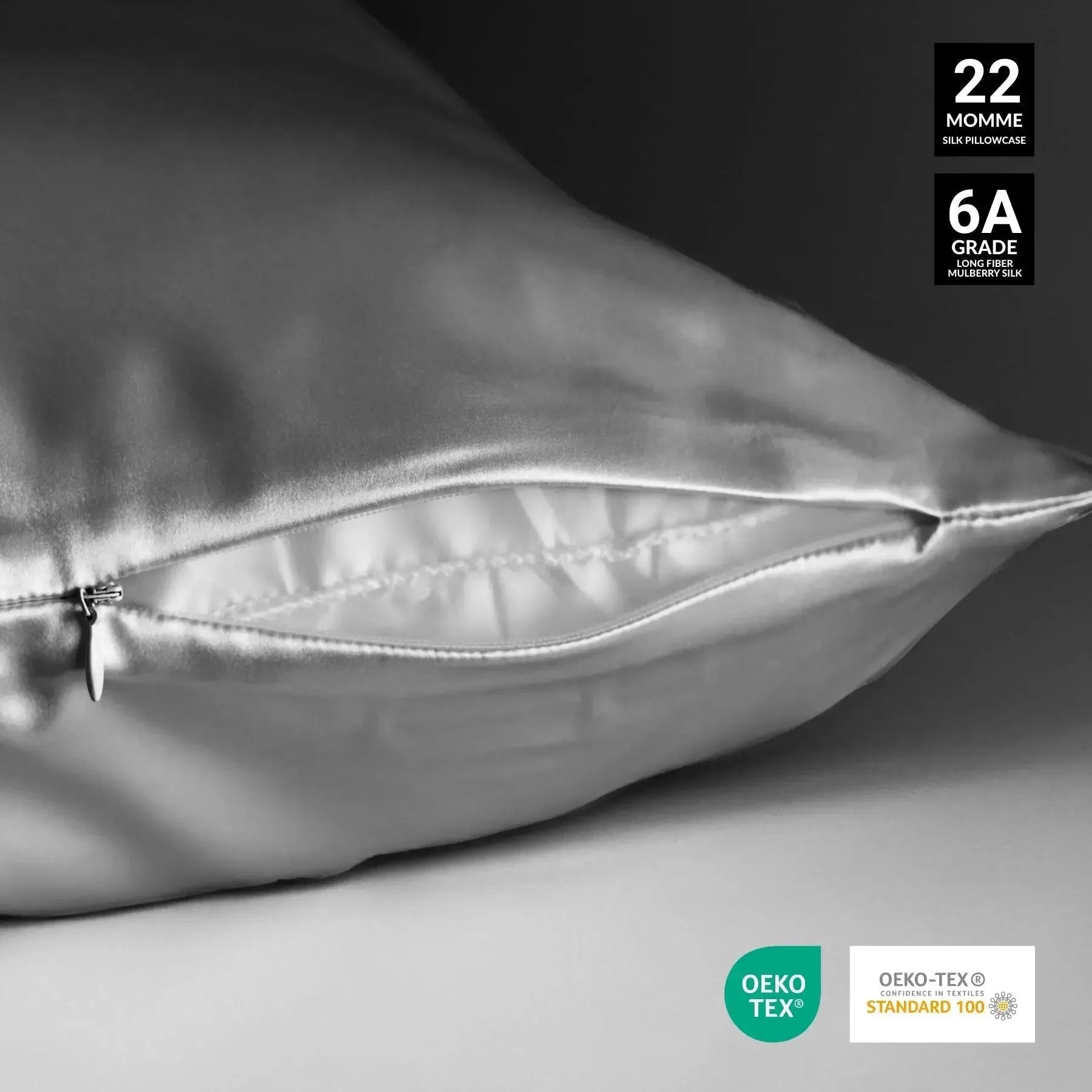 Silver Mulberry Silk Pillowcase brings modern elegance and understated luxury to your sleep routine. Crafted from 100 percent pure 22 Momme mulberry silk, it offers a beautifully smooth texture that minimises facial wrinkles and helps boost collagen while you rest.